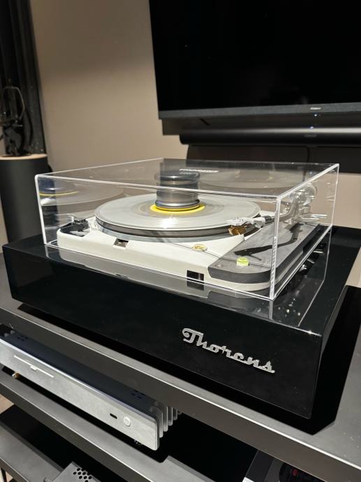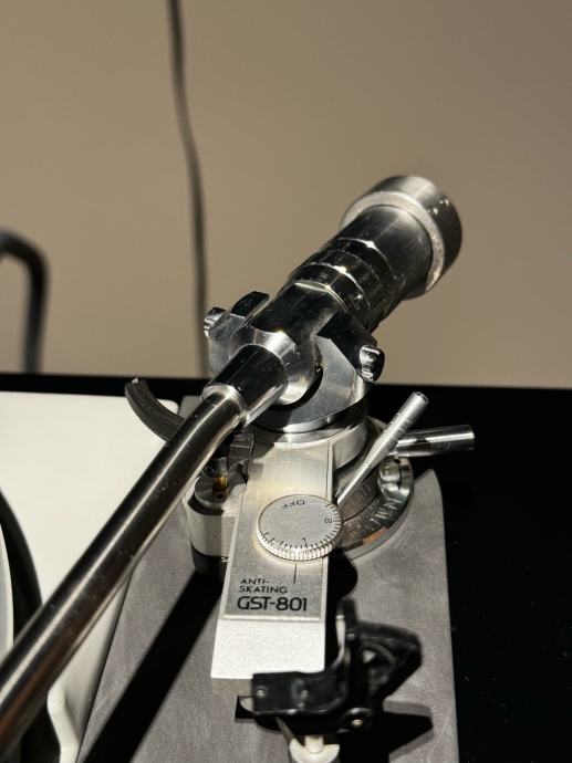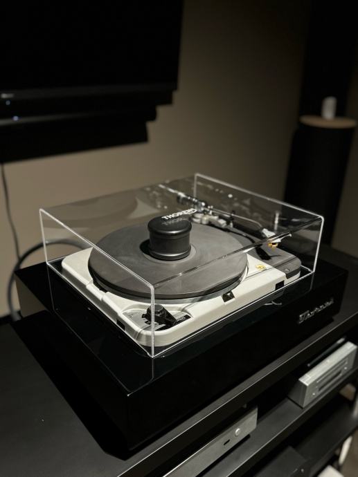 Gramofon je v odlicnem stanju 9,5/10 letnik 1976, vendar dodelan in obnovljen. Vso ozicenje novo (srebro+ cisti baker), 230V priklop Oyaide, glava Dynavector 17DX karat MC (max. 150ur), rocka Acos Lustre GST 801, nogice Finite Elemente ceraball, armboard, mat in utez so custom made iz grafita (300g), jermenski pogon (audio silente), jermen tihi (audio silente 50hz), piano lak ohisje, pokrov kot nov…uglavnem gramofon je bil sestavljen ljubiteljsko, poslusal sem ga zelo redko in se to predvsem audiofilske plosce. Zraven dam originalne dele. Ce bi koga zanimala celotna zgodba s step upom in mc predojacevalcem se lahko dogovorimo. Prav tako za zbirko plosc.