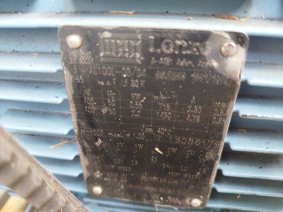 Prodam dobro ohranjen elektromotor z turbino za prezračevanje. 3000m3/h, 2,2kw 3 fazni elektromotor.