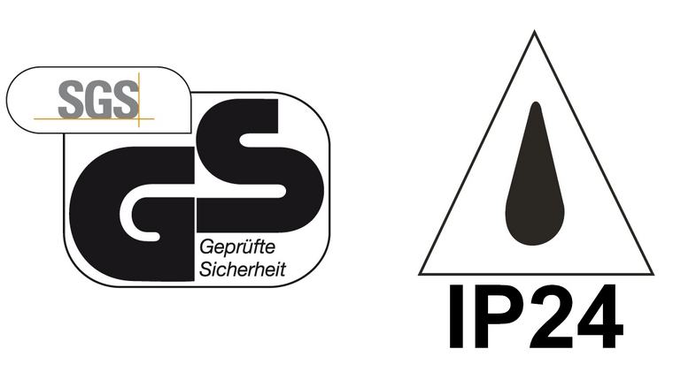 ⇾ Zaščitni razred IP24 pomeni zaščito pred prahom (> 12,5 mm) v škodljivih količinah ter zaščito pred curki vode iz katerega koli kota.