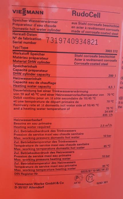 - Viessmann Rudocell 200 litrov