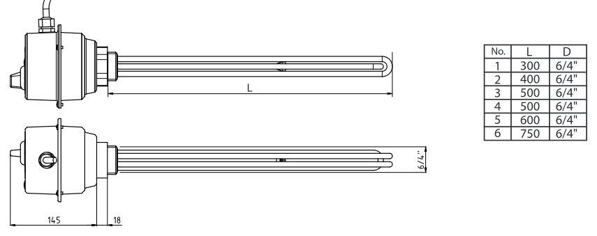 Grelni elementi (grelniki) s termostatom za večje kotle, z medeninasto prirobnico, galvaniziran.