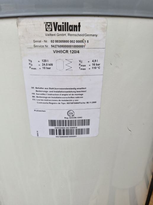 Prodamo 120 l grelnik vode - bojler za sanitarno vodo Vaillant VIR CR 120/4.
