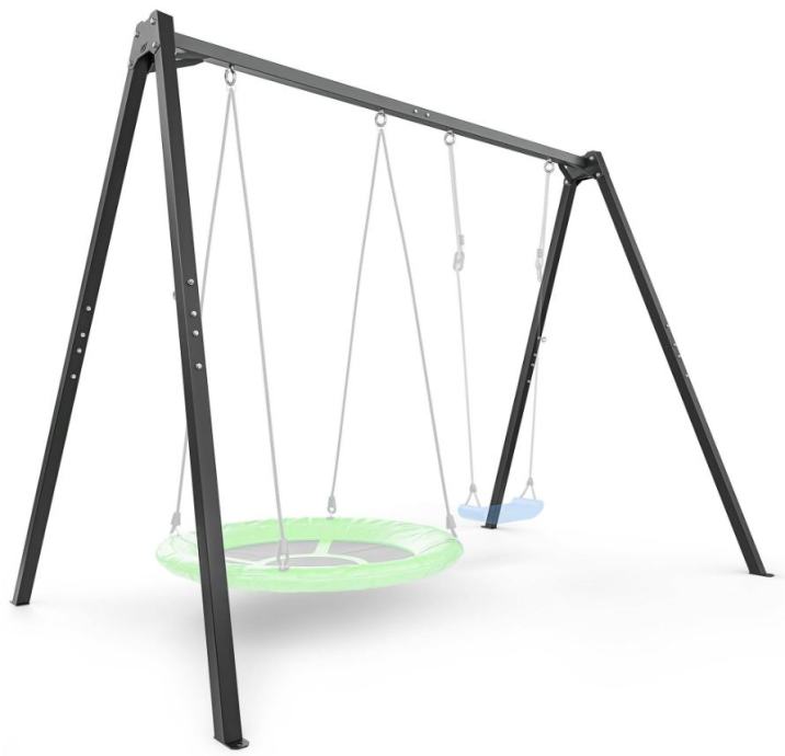 Jekleni nosilec za 2 gugalnici. Prenese 200 kg teže. Po želji lahko na strukturo obesite tudi visečo mrežo, vrečo za boks, elastike, gimnastične obroče ali TRX trakove. Na nogah se nahajajo luknje da lahko strukturo privijemo v tla. Dva nosilca priložena. Zgornji spoji med nogami in prečko so dodatno ojačani z dvema jeklenima nosilcema, kar poveča stabilnost in zagotavlja varnost uporabe.