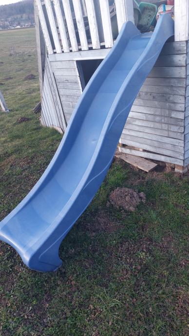 Prodamo Tobogan, modre barve, za montažo na višino približno 130 cm. Dolžina rsalnega dela približno 2 metra Lepo ohranjen.