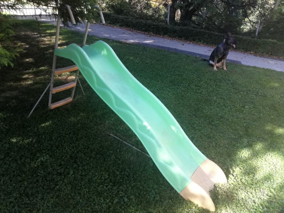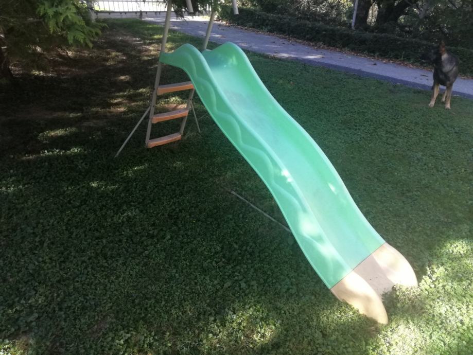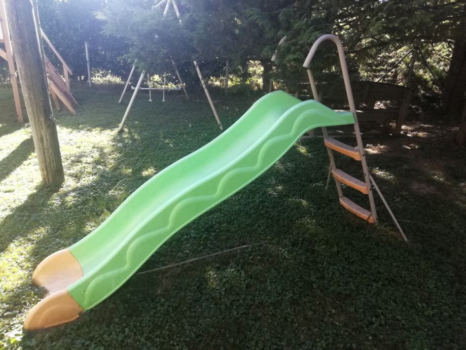 Lepo ohranjen tobogan za zunanjo uporabo, ki se pritrdi v zemljino.