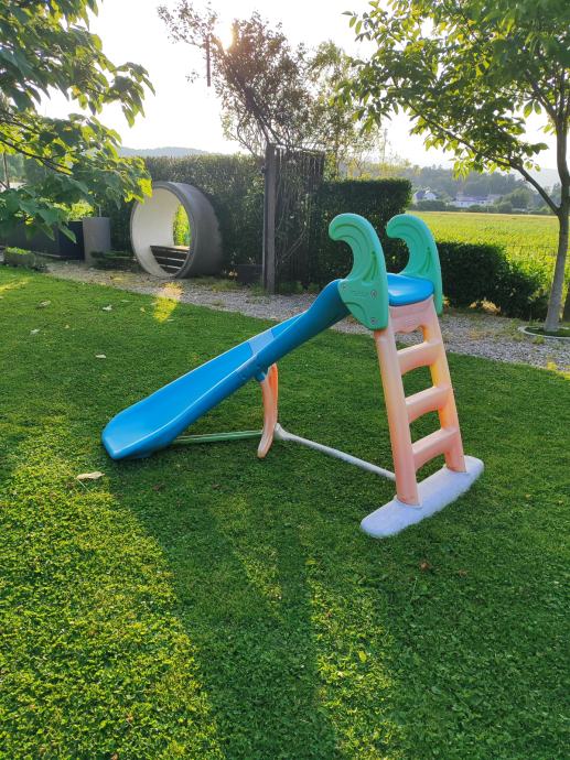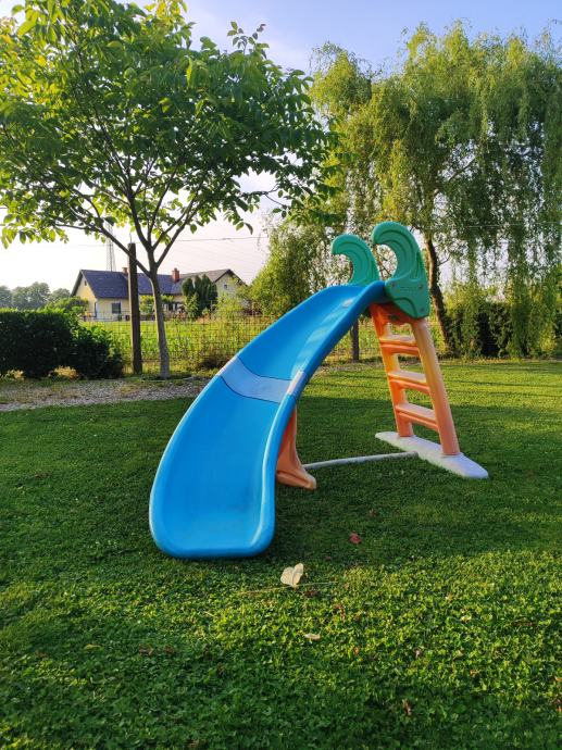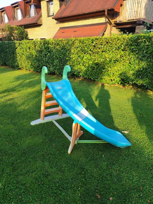 Prodam lepo ohranjen a od sonca zbledel kvaliteten vodni tobogan. Ima možnost priklopa vode. Nov je stal 150eur.