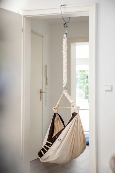 Za tiste, ki imajo radi svojega otroka povsod ob sebi, je objemka na vratih popolna za obešanje otroške viseče mreže. Ko zamenjate sobo, je potreben le en premik zapestja in malčki se z vami sprehajajo po hiši ter še naprej pozorno opazujejo, kaj se dogaja okoli njih, ali pa nežno dremajo pod nadzorom. Prijemalo za vrata lahko brez orodja ali montaže pritrdite v vsak okvir vrat, ki ima vsaj 5 mm izbočenosti.