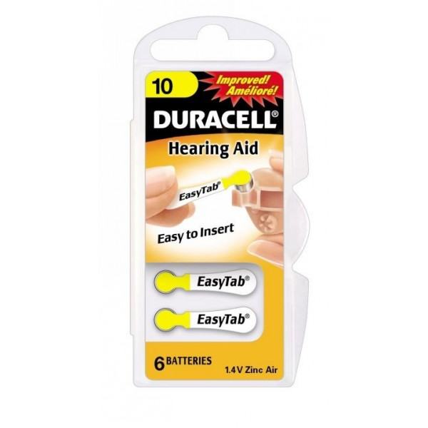 **Komplet 6 baterij** Duracell tipa **10 / A10 / rumena**, primeren za **vse vrste slušnih aparatov**, ki uporabljajo ta standard.