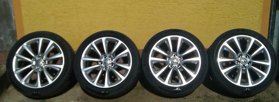 Prodam lepo ohranjena platišča original Opel z letnimi gumami 235 45 18, dve gumi Kumho , dve Fulda