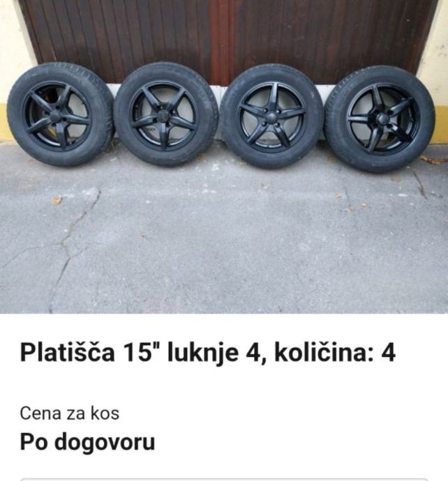 Prodam 4 kom alu platišč OZ 195 65 R15 z zimskimi gumami Continental cca 4mm profila.