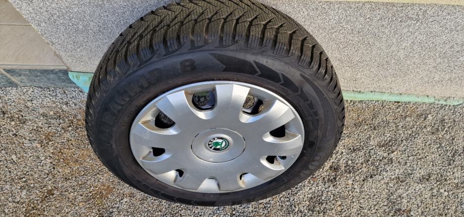 Prodam jeklena platišča s pokrovi in gumami. Original vw za škoda, vw, seat ET 47,6J, 5x112 z zimskimi gumami 195 65 15, 6-7mm profila.