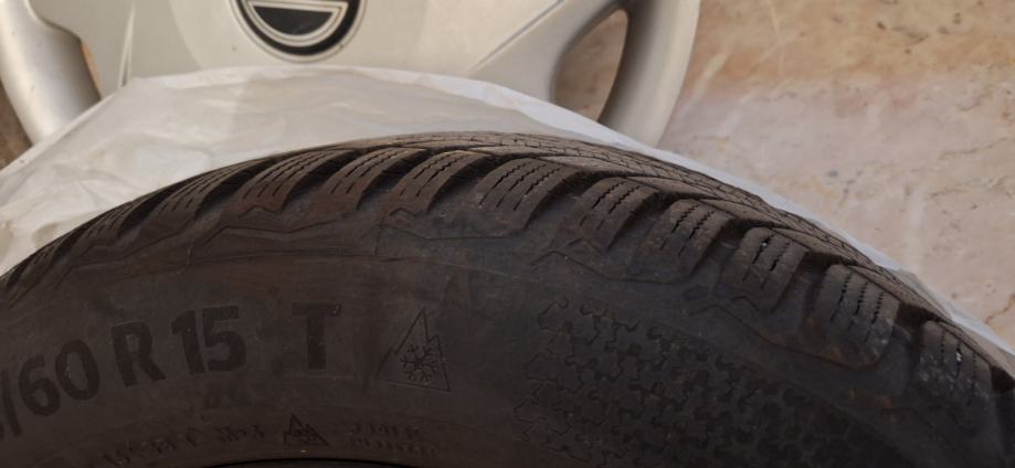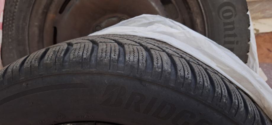 Prodam štiri jeklena platišča z Volvo pokrovi, skupaj s štirimi zimskimi pnevmatikami : 2x Continental + 2x Bridgestone.