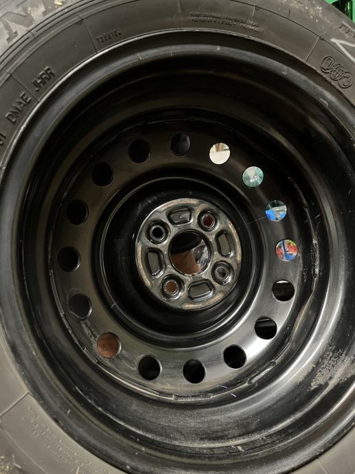 Prodam zelo dobro ohranjena železna platišča rabljena 3 sezone skupaj s letnimi pnevmatikami.
