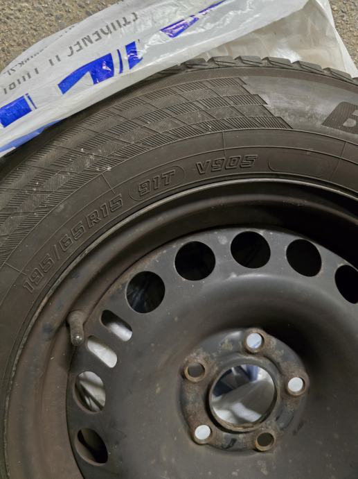 Prodam 4x rabljena jeklena platišča z zimskimi pnevmatikami 195:65:R15 - 91T.