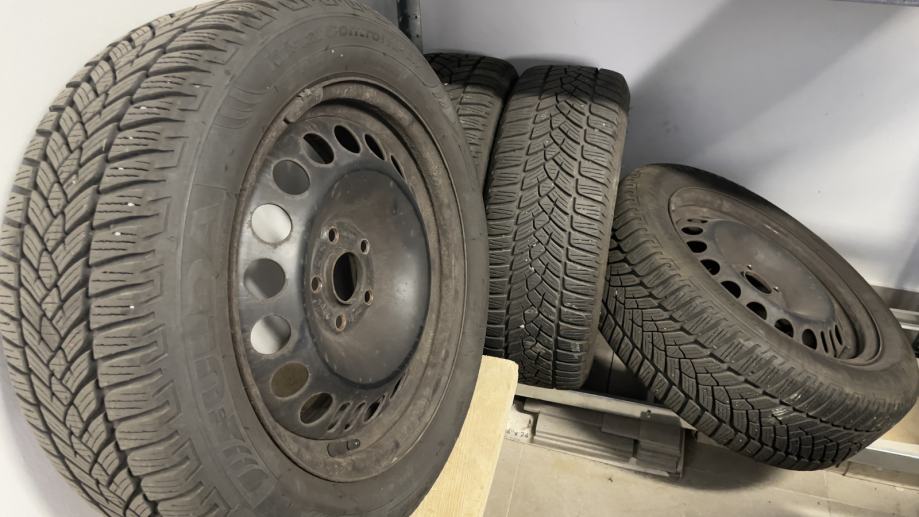 Prodam jeklena platišča z zimskimi gumami 2 leti stare. Fulda 205/55R16 91H. Razmerje med vijaki 5x105 primerna za Chevrolet Cruze in Opel.