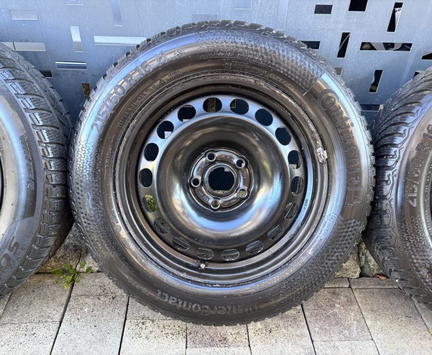 Prodam rabljena originalna jeklena platišča znamke Volkswagen,16 col,premer med vijaki 5x112mm,sredinska luknja 57,1mm,ET41,brez poškodb,z zimskimi gumami Continental in Pirelli,dimenzije 215/60-16,do t24 in 23,profila 2x7mm in 2x4mm,vožena na Passatu,primerna pa so tudi za ostala vozila znamk Volkswagen,Seat,Škoda….Cena je za komplet platišč in gum.