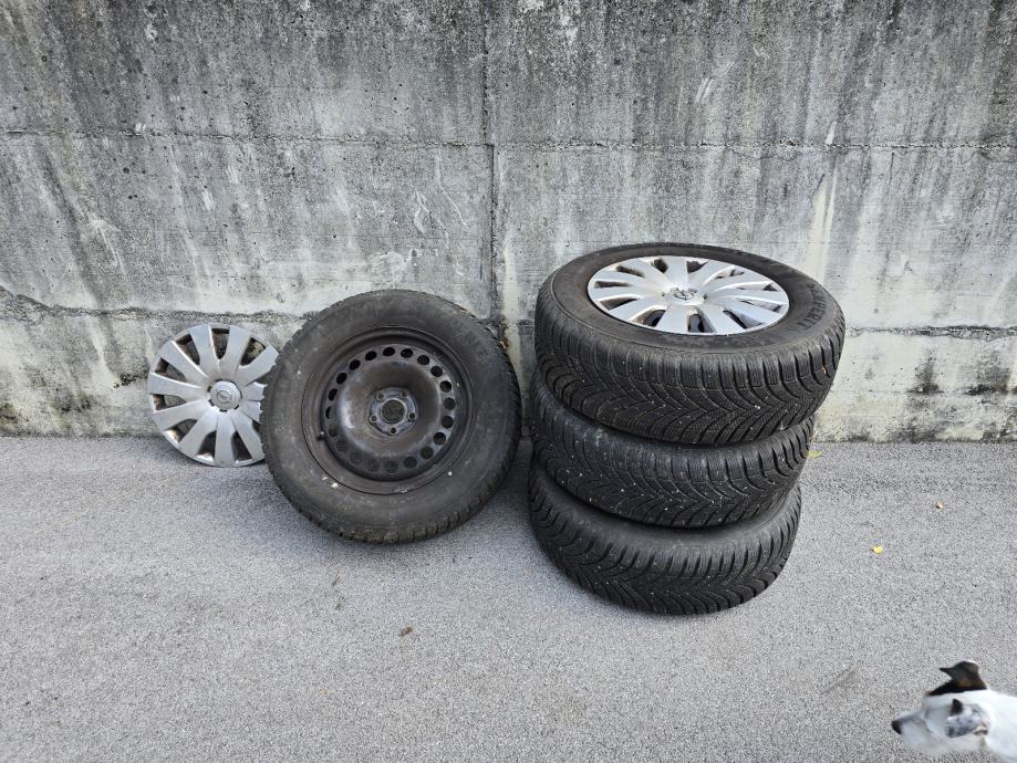 Zimske gume na jeklenih platiščih in zašitnimi pokrovi. Zimske gume v zelo dobrem stanju, na avtu eno zimo. 215/65 R16; 5x105mm.