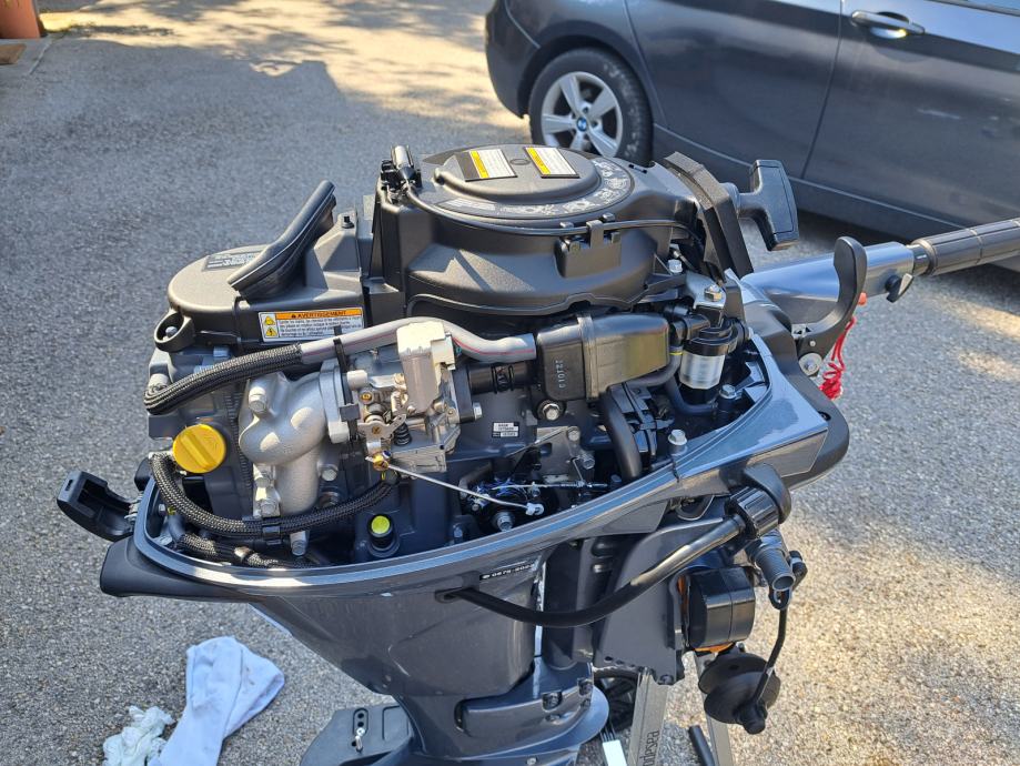 Vse skupaj je pripravljeno na takojšnjo uporabo – brez dodatnih vlaganj! Ker je bil motor kupljen eno leto kasneje kot čoln, je bilo vse skupaj ponovno vpisano v register plovil lani v začetku poletja. Registracija tako velja 5 let, do leta 2029! S punco sva s čolnom res zelo uživala, v dobrih pogojih je dosegal hitrost do 40 km/h. Vse skupaj se lahko prevaža v avtomobilu. Sam sem motor prevažal v prtljažniku, čoln pa v strešnem kovčku (čoln se zloži v torbi, kot na fotografiji). Avto ni bil velik, BMW 1! Yahama F15 je najbrž najmočnejši motor, ki ga lahko še prevažamo tako v avtu. Ob menjavi uplinjača pa se motorju lahko doda še 5 konjskih moči. Gre praktično za enak blok motorja kot Yamaha F20.