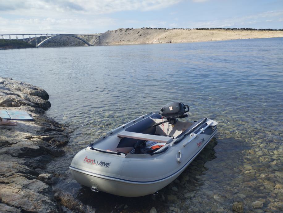 Prodam odlično ohranjen gumenjak Honwave 3m ( l.2019)+ Yamaha 5( l.2016) izvenkrmilni motor, vso pripadajočo opremo, poleg pa še sprednji voziček za lažji transport. Nosilnost 610 kg, alu dno,....