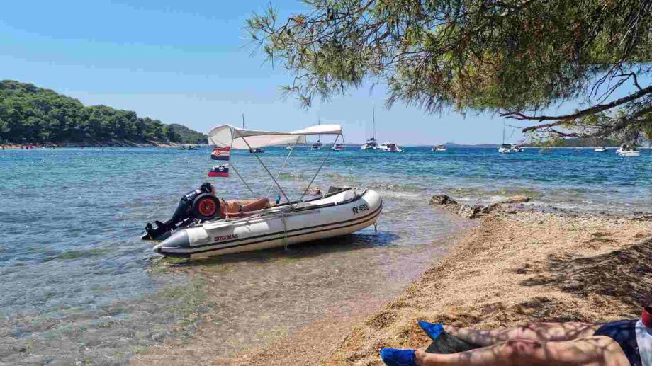 Dolžina 3,6 m , širina 1,65 m, brez motorja.