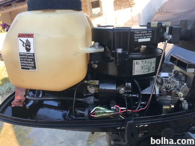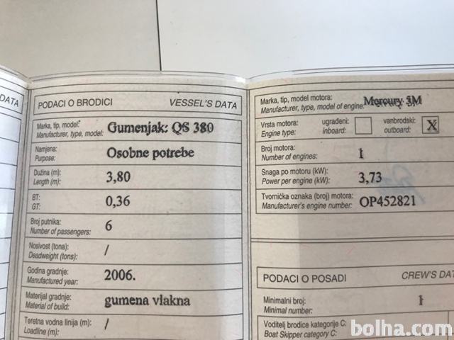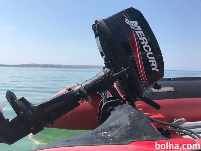 Motor: Mercury 5 KM (2 taktni, ročni zagon in ročno krmiljenje), deluje brez problema.