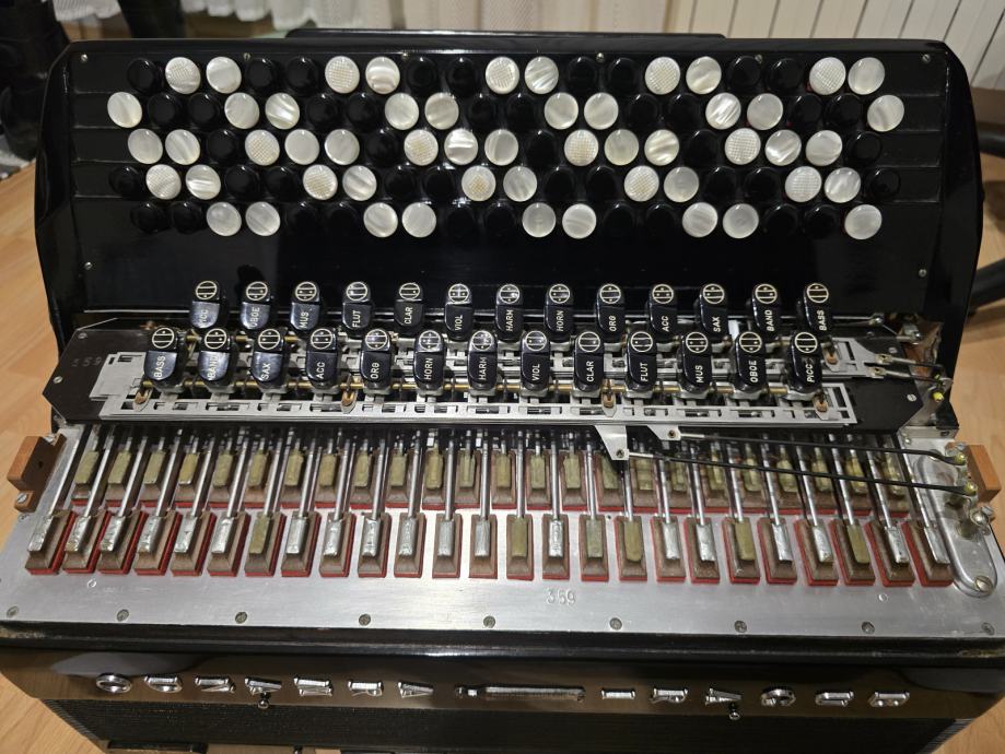 Harmonika na desnoj strani ima 13 duplih registara (ukupno 26), bočni registar (prebacuje na violin) i 3 bradna registra (basson, master i clarinet)
