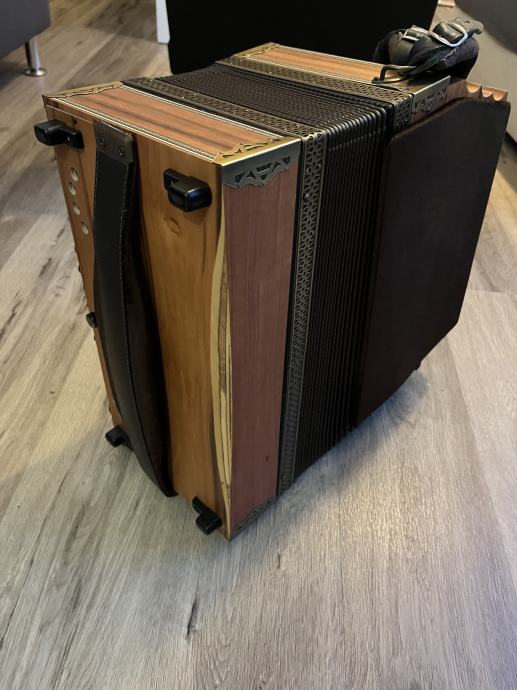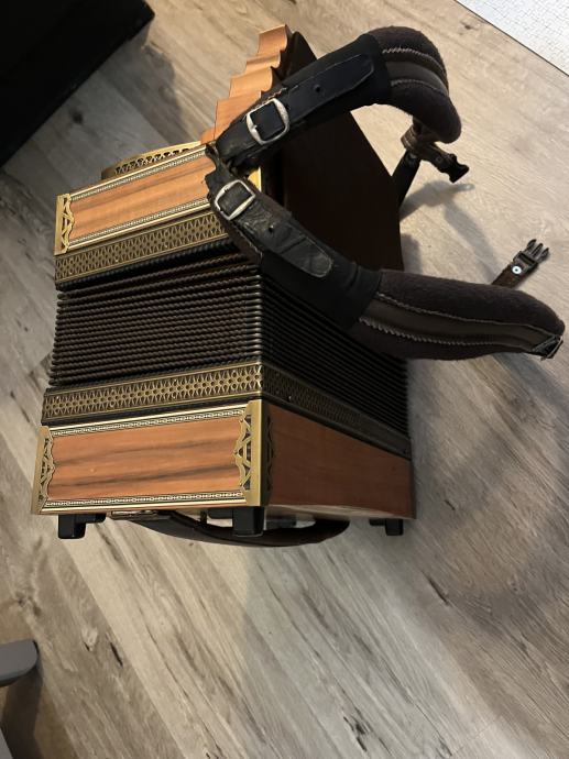 Prodamo diatonično harmoniko velikost 36 CFB z dvema pasovoma (otroški in odrasli). Harmonika je dobro ohranjena. Prodajamo jo, ker smo prenehali obiskovati glasbeno šolo.
