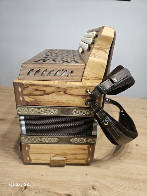 Prodam nerabljeno diatonično harmoniko velikosti 38cm. Uglasitev CFB Cagnoni Tipo amano glasilke. Unikatne izdelave.