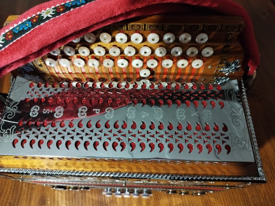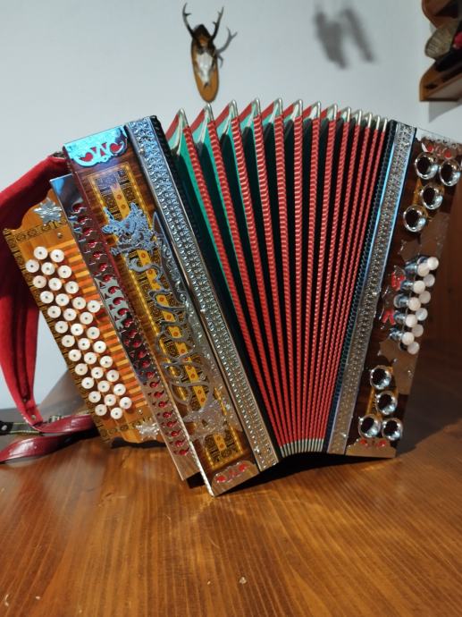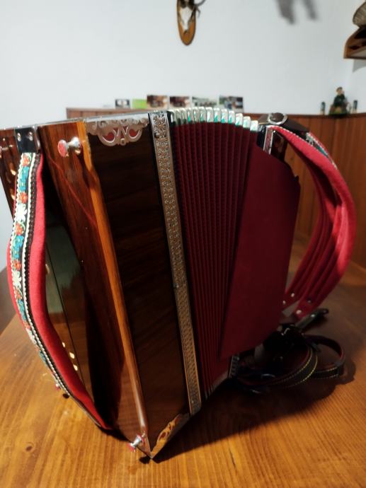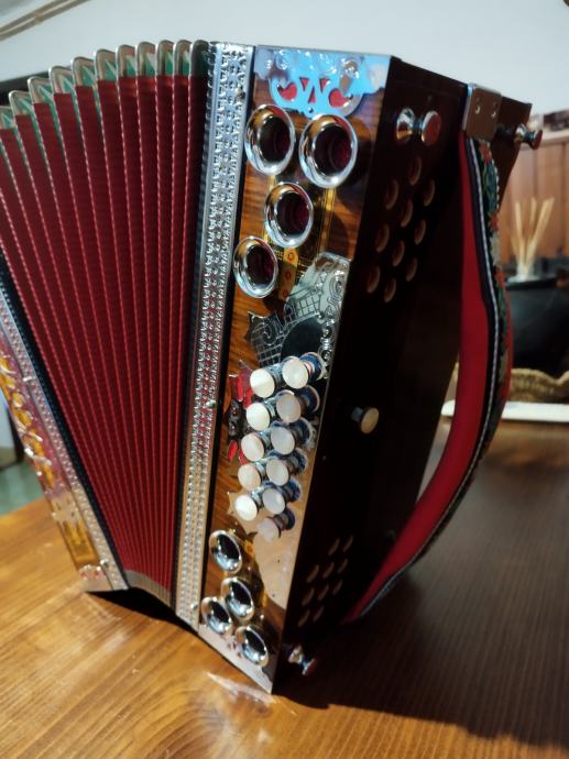 Prodam kvalitetno diatonično harmoniko.proizvajalca ,IVAN KAPŠ, C F B , harmonika je brez napake, na novo oglašena pri Kapšu, ima izredno lep močan zven, lahka za igranje, mehanika je najboljša kvaliteta tistih časev