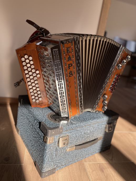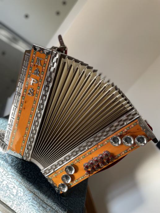 Prodam harmoniko KAPŠ barve tisa, visok sijaj. Tip: 3 vrstna (C-F-B). Letnik 2010. Zraven vključeno: kovček, oprtna jermena in spona. Harmonika je zelo lepo ohranjena. Ne dolgo nazaj je bila pregledana pri samem izdelovalcu, ki lahko kakršnekoli informacije o kakovosti harmonike tudi potrdi.