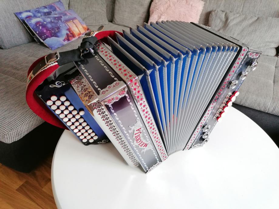 Prodam diatonično harmoniko Melodijo. Zelo dobro ohranjena, kot nova. Duri Ce Ef Be.