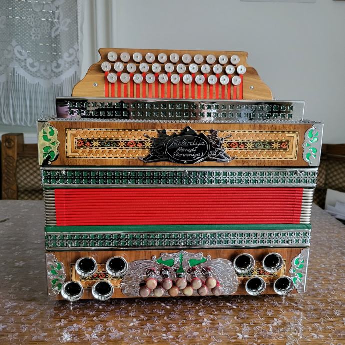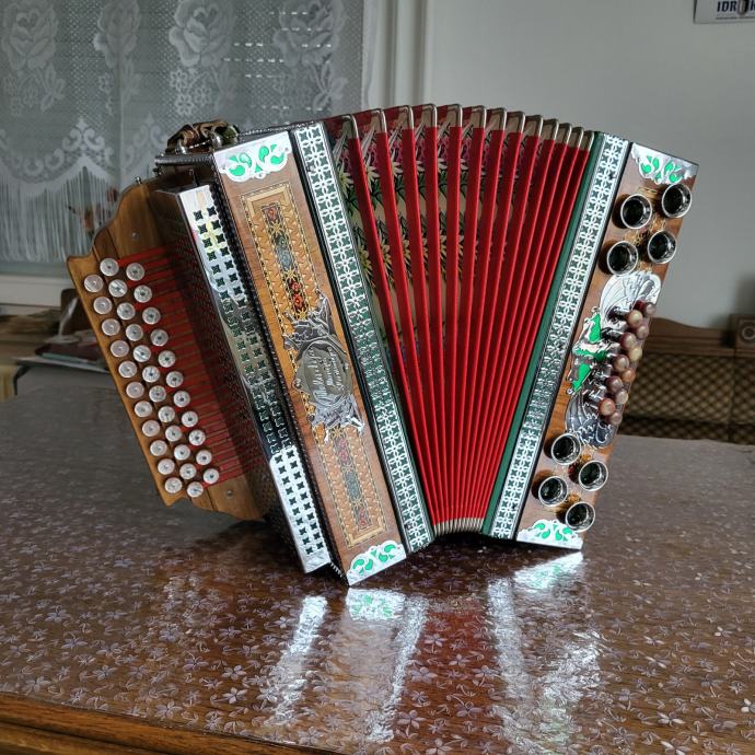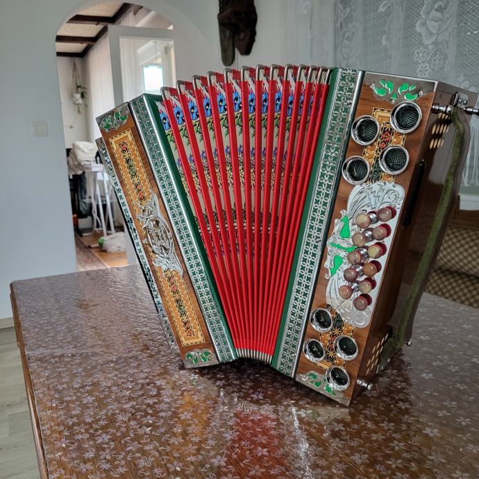 Prodam odlično ohranjeno diatonično harmoniko, znamke Melodija, izdelana za Ameriški trg. Uglasitev GCF z lepim Slakovim zvenom. Menjam tudi za A D G, z mojim doplačilom. Na voljo je tudi diatonična harmonika Kapš C F B tudi odlično ohranjena. Cena je po dogovoru.