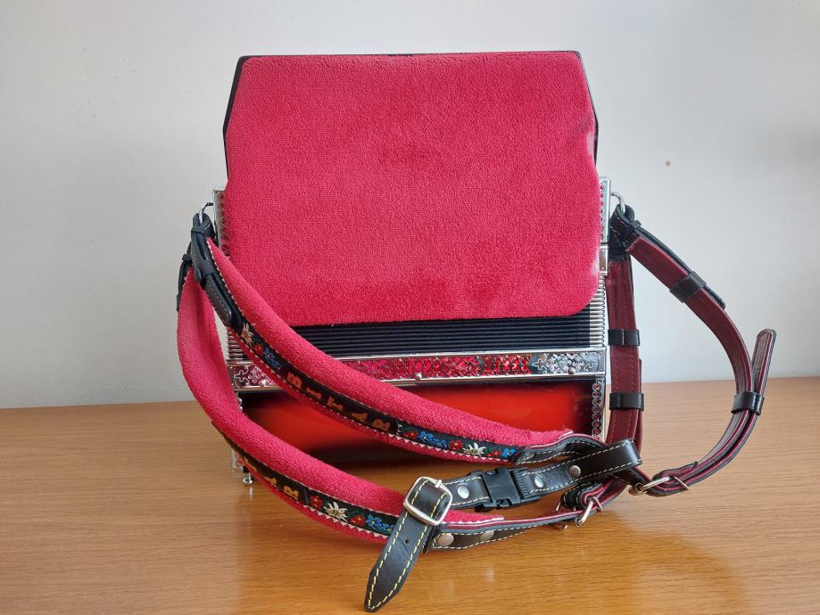 Prodam diatonično harmoniko Sitar, velikost 32, uglasitev C-F-B, 3 vrstična, 4 dodatni gumbi, starost 6 let, lepo ohranjena. Harmoniko prodajam zaradi nakupa večje harmonike. Priložen je tudi kovček za prenašanje.