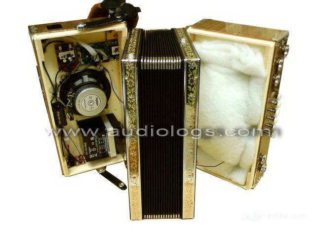 Accordion includes pro audio player, graphic display, power amp, speakers,switches and battery. The kit also includes an associated battery charger.Stereo sound system and high-quality audio recordings to create a realistic diatonic harmonics, like the real one.We can also add some test songs,studio recorded.Components are in modular structure, easy installed in model of diatonic accordion.