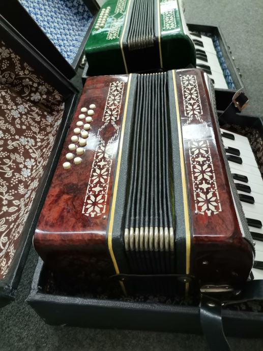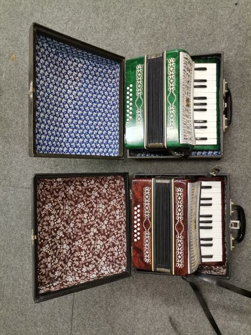 Prodam dve mali harmoniki, cena za eno je 80 eur, če pa kdo kupi obe hkrati ju prodam za 150 eur. Polg sta tudi kovčka.