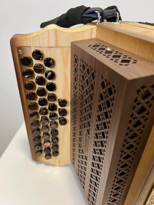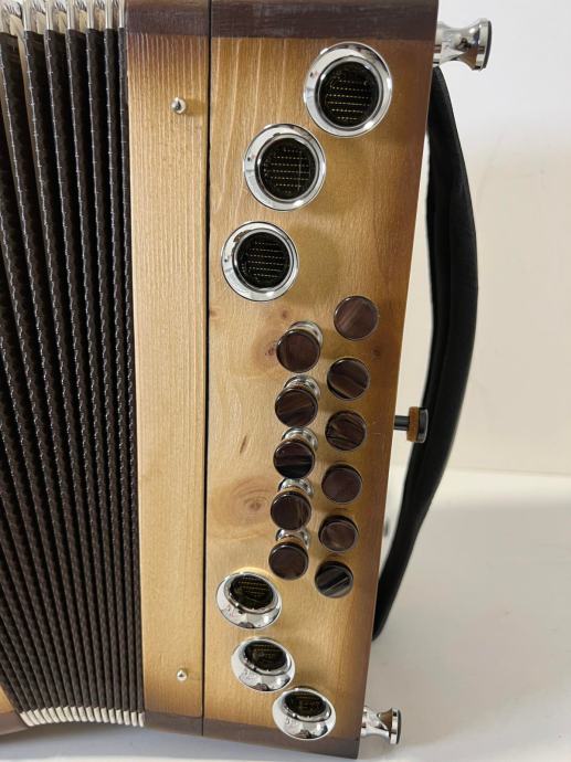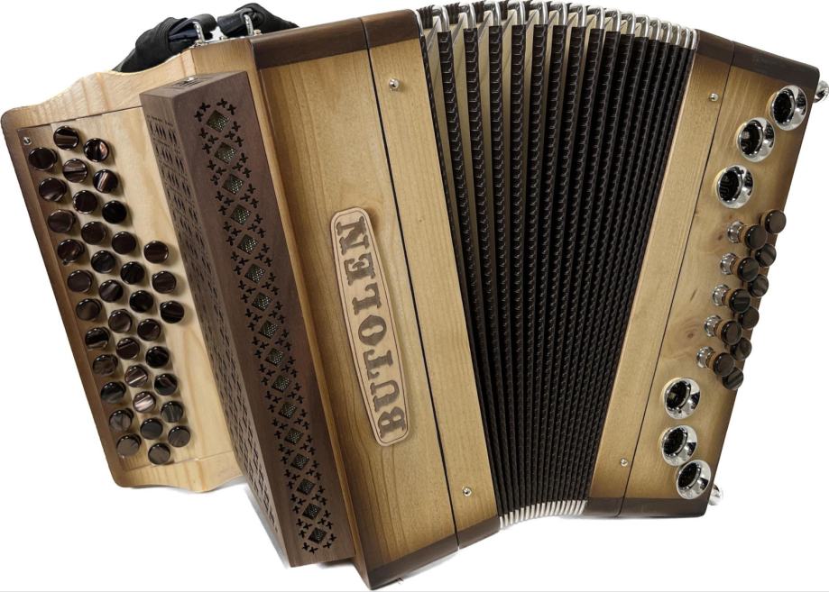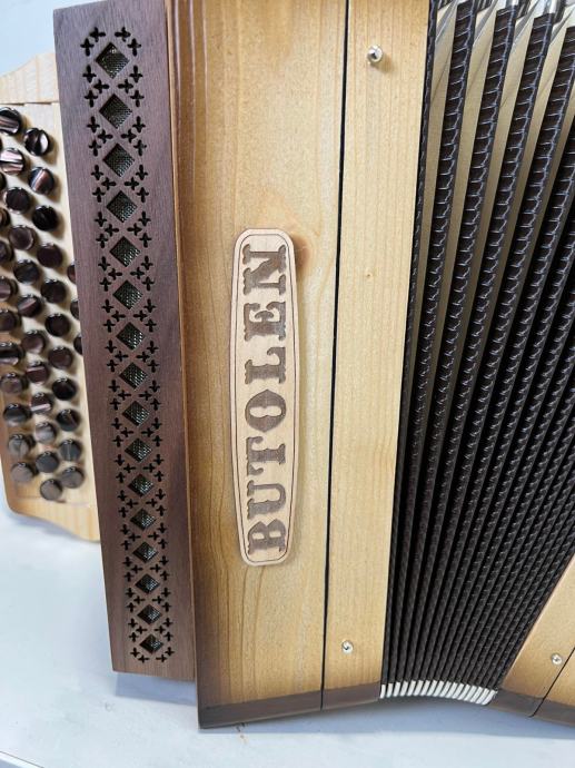 Najem otroške diatonične harmonike Butolen C-F-B, Letnik 2018, Harmonika je kot nova, 30 cm visoka, 11,12,11+3 dodatni gumbi.