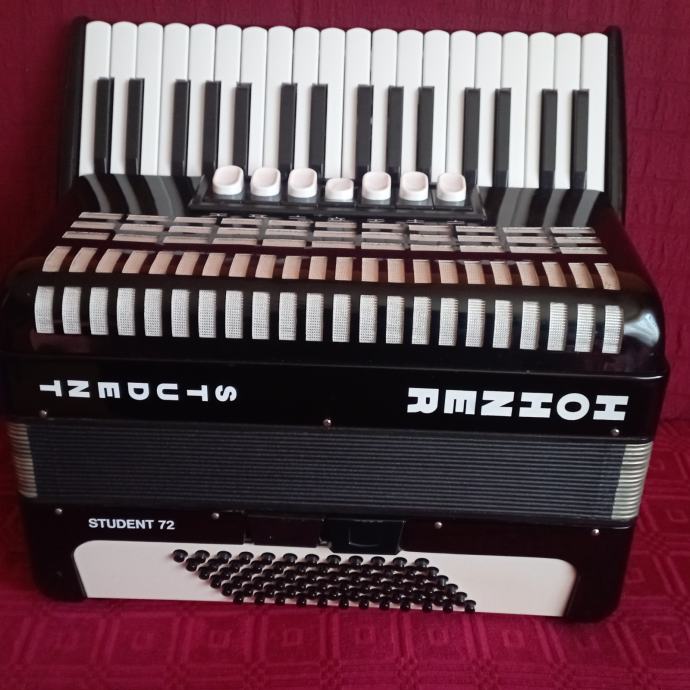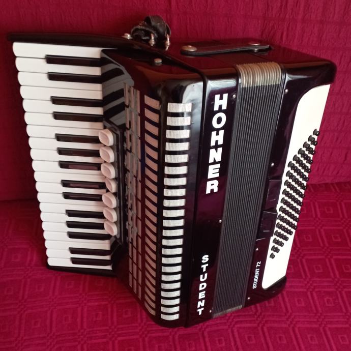 Prodam harmoniko Hohner Student 72 basa 7+2 registra z kovčkom. Harmonika je brezhibna malo rabljena odlično ohranjena. Inf. 031/530-813.