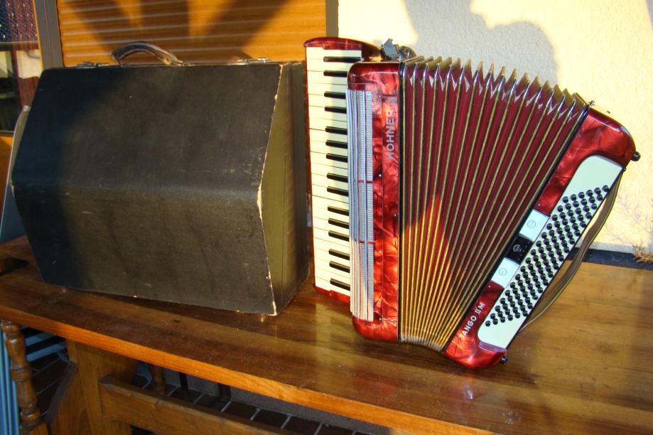 PRODAM STARO KLAVIRSKO HARMONIKO HOHNER 96 BASOV POPOLNOMA ISPRAVNO, ZELO LEPO DIHTA 3 KRAT OGLAŠENA ZRAVEN JE LEPO OHRANJEN KOVČEG, ZA VEČ INFO NA MOB 040208786