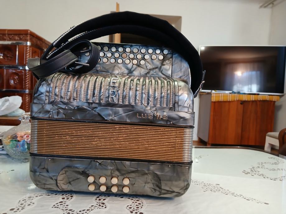 Harmonika Hohner srebrna z novo elektroniko z dodatnim akumulatorjem za več ur igranja v kovčku, brezhibna zelo lepo ohranjena velikost 31 x 20 cm. Tel. 031 819 330 ali 071 259 440 Janez.