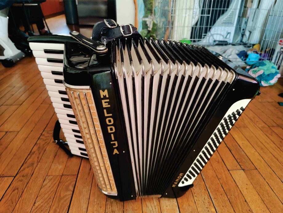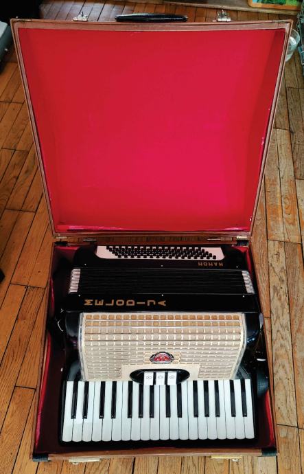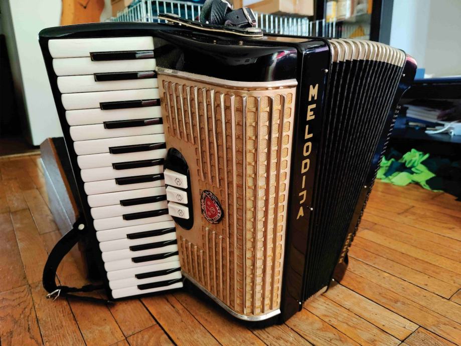 Prodam dobro ohranjeno klavirsko harmoniko Melodija 80 basno s kovčkom.