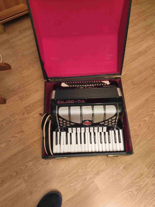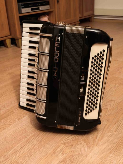 Prodam rabljeno klavirsko harmoniko znamke MELODIJA tip VIOLETA III, dobro ohranjeno skupaj s kovčkom.