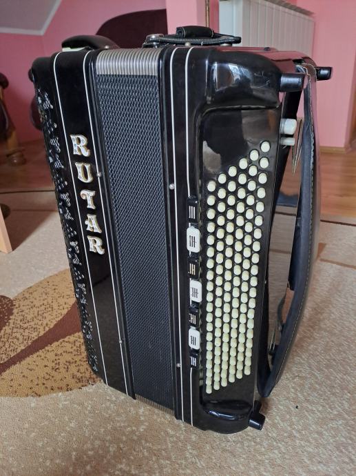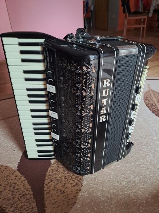 Prodam harmoniko Rutar Simfonijo, 120 basna, 5 - glasna z duploj kabinoj, tudi ma 5 - glasne heliokon base. 13 + 7 registrov. Uz harmoniko orginal kovček, remen za oko pasa.