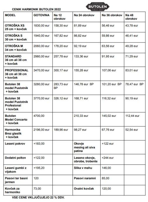 Harmonika Butolen na obroke – v nekaj minutah preko mobilnega telefona