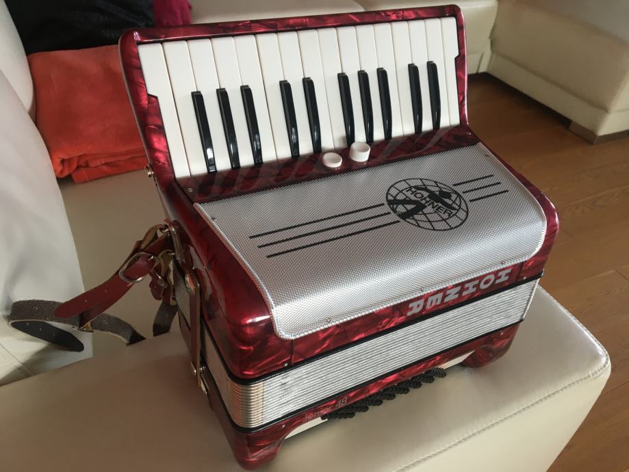 prodam 48 basno harmoniko, 2 - glasna na klaviaturi, 4 - glasna na basih, primerna je predvsem za začetnike - sicer kogarkoli..., brezhibna, GARANCIJA, v originalnem kovčku, zelo lahka, odličen zvok, od 1.lastnika, lastnik prof. v glasbeni šoli.
