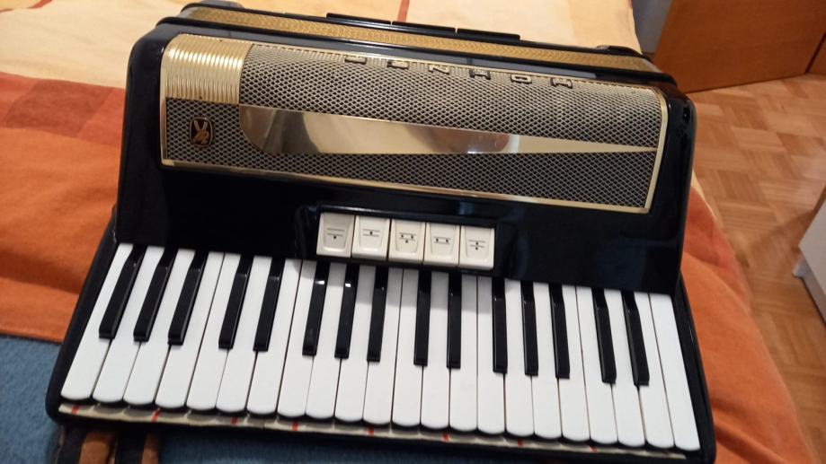 Prodam ispravno in ohranjeno 96 basno klavirsko harmoniko Hohner Lucia III , 5+3 registra z prenosno nahrbtno torbo. Harmonika tesni kot nova, uglašena ,izredno lahka, primerna za glasbene šole kot tudi darilo ob Božičku ali kaki drugi priložnosti.