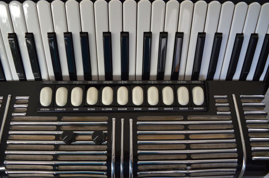Prodam odlično ohranjeno 120 basno klavirsko harmoniko Hohner morino model Slavko Avsenik. Je glasna z lepim alpskim zvokom. Vgrajene ima mikrofone. Zraven je orginalni kovček in novi pasovi. Informacije na tel. št.: 041 760 746