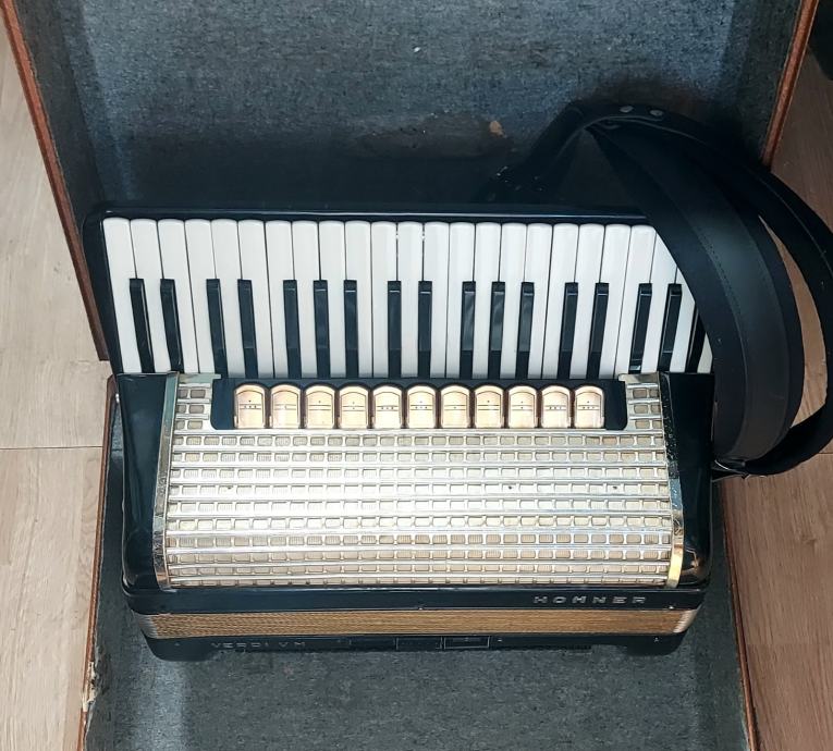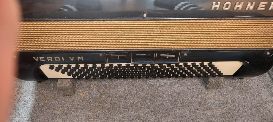 Hohner Verdi VM 120 basova 11+3 registra četveroglasna u dobrom stanju.Ima dobar kockasti kofer te nove široke profi remene.Moguća zamjena za manju ili neispravnu.Osobno preuzimanje ili slanje poštom prema dogovoru.