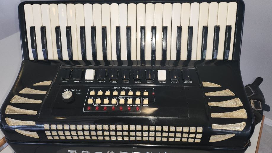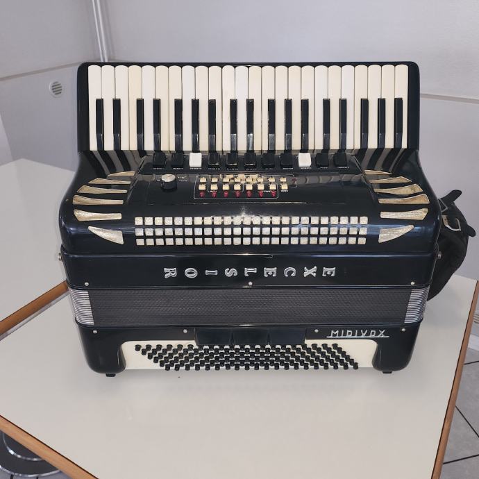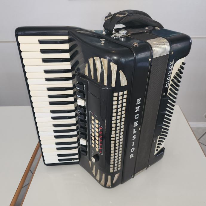 Prodam harmoniko Excelsior Midivox, staro cca. 15 let, lepo ohranjeno ter servisirano pred enim letom. Uglasitev, meh, pasovi, registri. MIDI je starejšega tipa in ima VGA priklop sicer dela, ampak svetujemo menjavo.Harmonika NI PICOLO IN NI PRIMERNA ZA SRBSKO NARODNO GLASBO!Harmonika je na ogledu v Ajdovščini. Cena NI ZADNJA... naprošam, da ne pišete na mail ampak pokličite, samo resni med 10 in 18 uro na 051609435 g.Dušan.