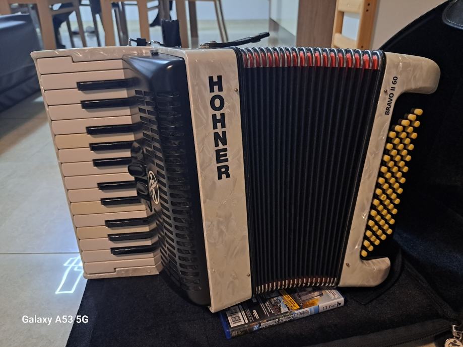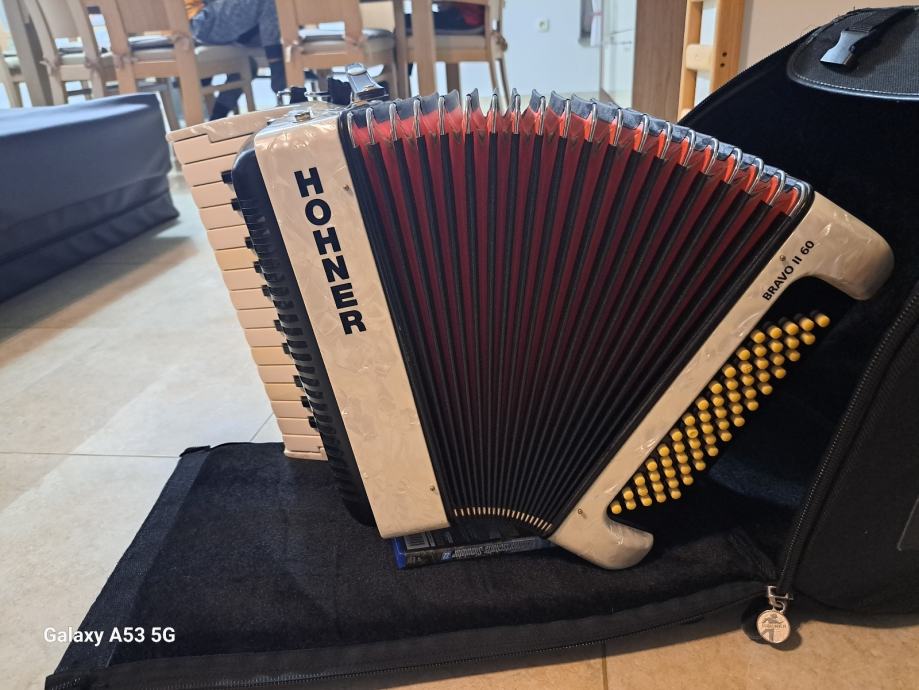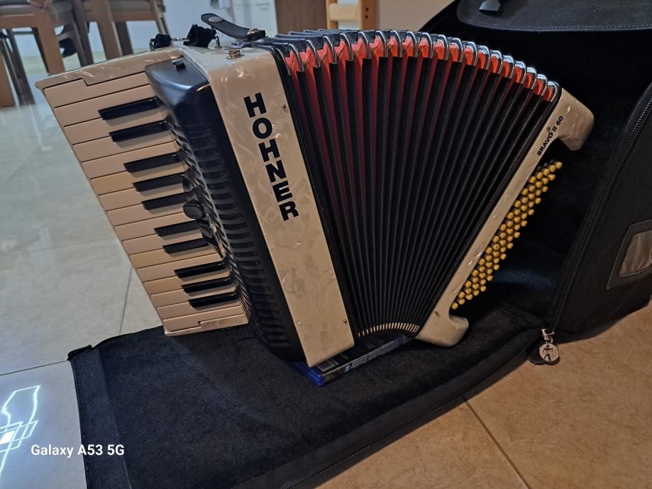 Pozdravljeni, prodajam odlično ohranjeno harmoniko, znamke HOHNER 60 basna. Harmonika je bila rabljena nekje pol leta, na kar smo morali kupit večjo. Harmonika je vrhunsko ohranjena, delujoča ter za takojšnjo uporabo. Prodajamo jo izključno zaradi neoporabe in je takoj na razpolago novemu uporabniku. Cena:830 evrov LP Boštjan tel.: 031674681