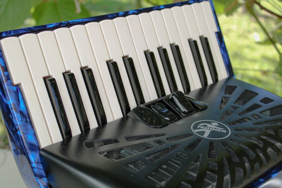 Prodaja se odlično ohranjena klavirska harmonika HOHNER BRAVO II 48, modre barve.